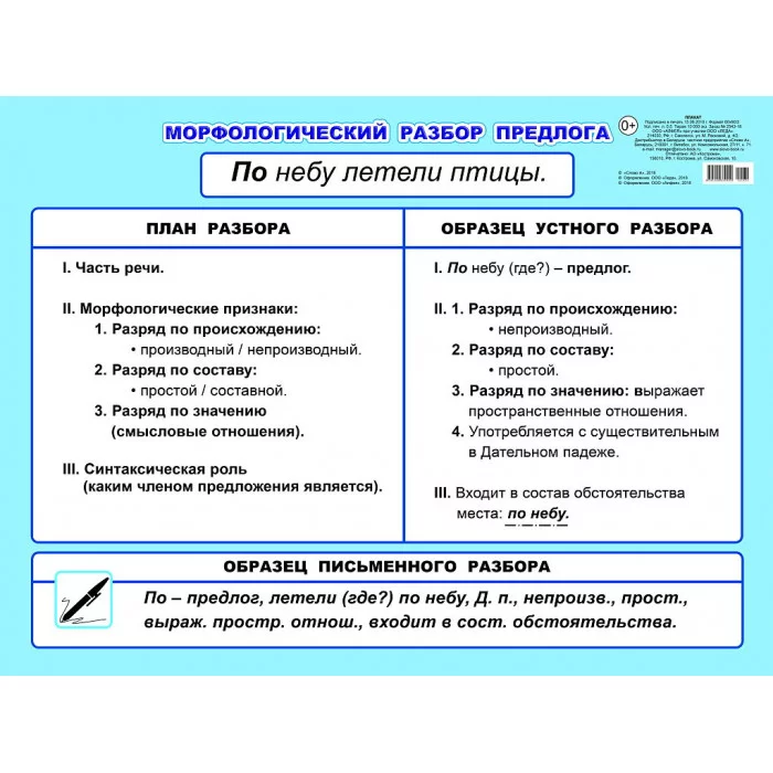 Плакат картонный. Морфологический разбор предлога 5-6 кл 00034 0+