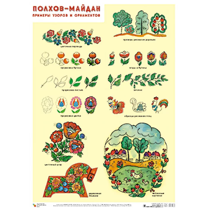 Плакат. Полхов-майдан. Примеры узоров и орнаментов. / Плакаты изд-во: Мозаика-Синтез 1358268