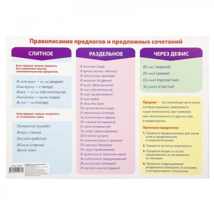 Обучающий плакат А3 "Правописание предлогов и предложных сочетаний" 2254076