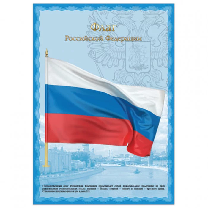 Плакат с гос.символикой "Флаг РФ", А3, мелованный картон, фольга, BRAUBERG, 550114 550114