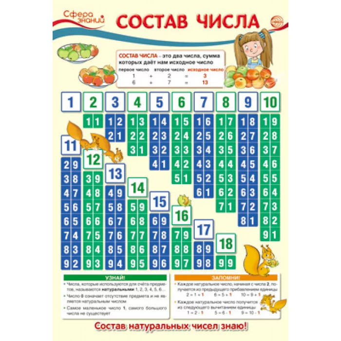 ПО-13368 Плакат А3. Математика в начальной школе. Состав числа / Сфера знаний 4630112000054