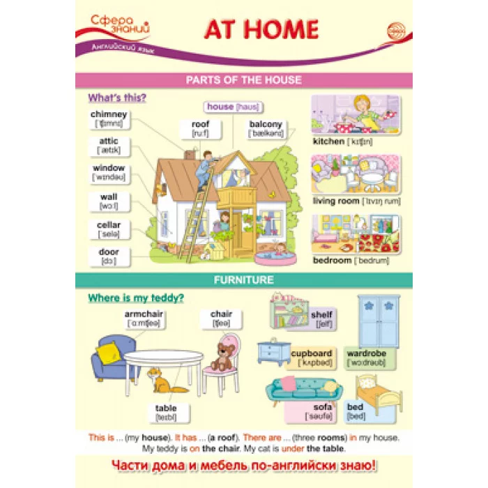 ПО-13440 Плакат А3. Английский язык в начальной школе. At Home (Дома) / Сфера знаний 4630112003611