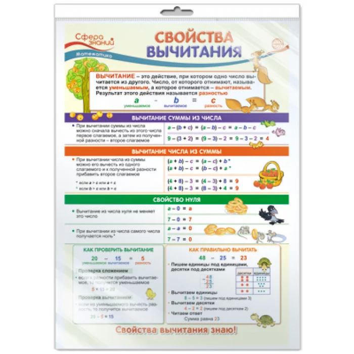 ПО-13499 Плакат А3. Математика в начальной школе. Свойства вычитания / Сфера знаний 4630112005554