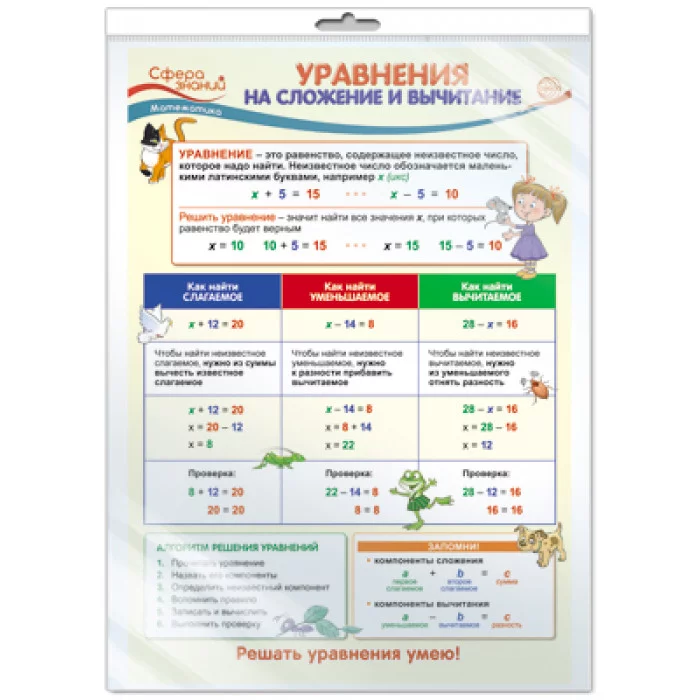 ПО-13500 Плакат А3. Математика в начальной школе. Уравнения на сложение и вычитание / Сфера знаний 4630112005561