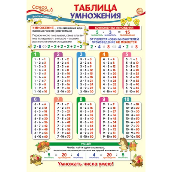 ПО-13502 Плакат А3. Математика в начальной школе. Таблица умножения / Сфера знаний 4630112005585