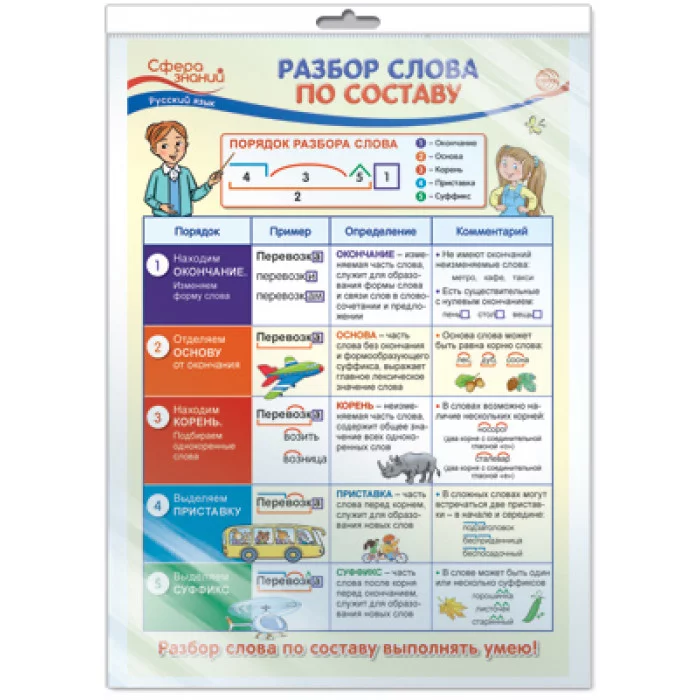 ПО-13736 ПЛАКАТ А3. Русский язык в начальной школе. Разбор слова по составу / Сфера знаний 4630112010992