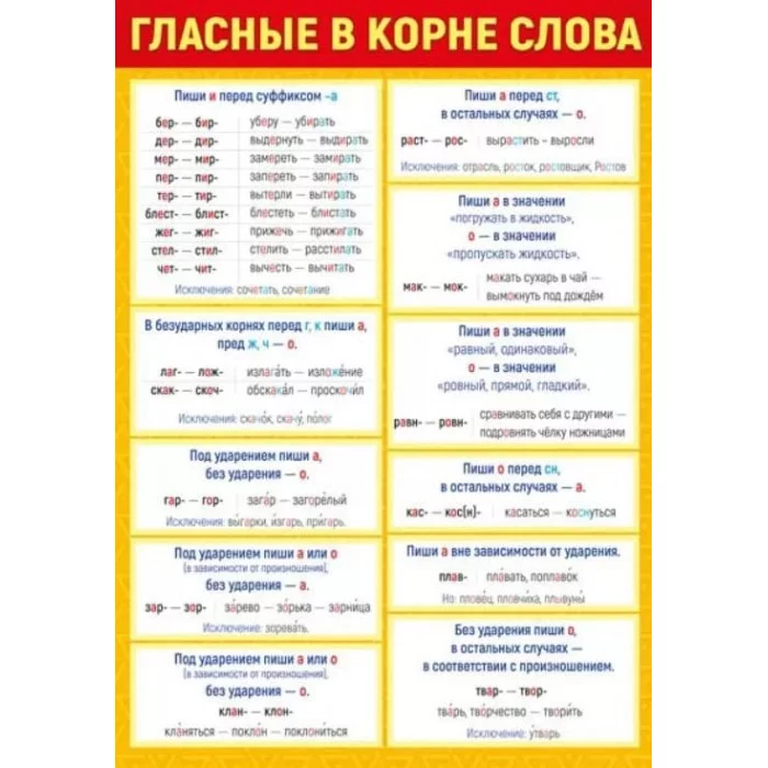 Плакат а4 "Гласные и согласные в корне слова" Мир поздравлений 71381