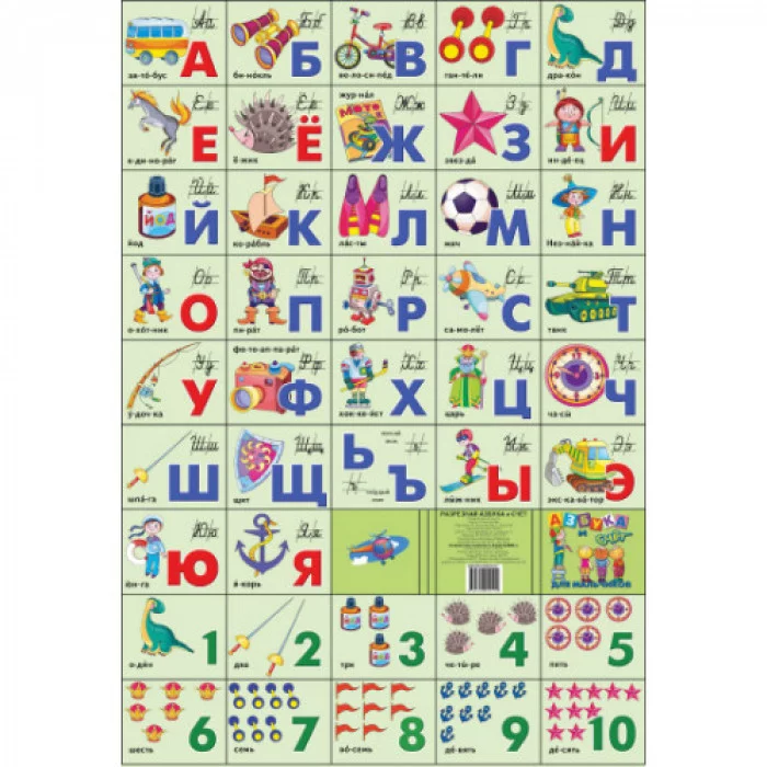 Плакат. Азбука русская разрез + счет/ДЛЯ МАЛЬЧИКОВ (мал.формат) 220*330