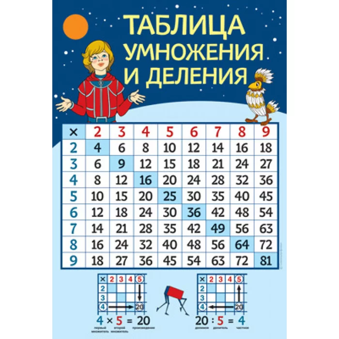 Ш2-13117 Мини-плакат А4. Таблица умножения и деления с героями из м-ф Тайна третьей планеты, 4630076992891