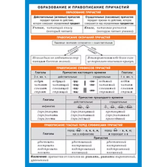СМ. Русский язык. Образование и правописание причастий. / Справочные материалы изд-во: Айрис