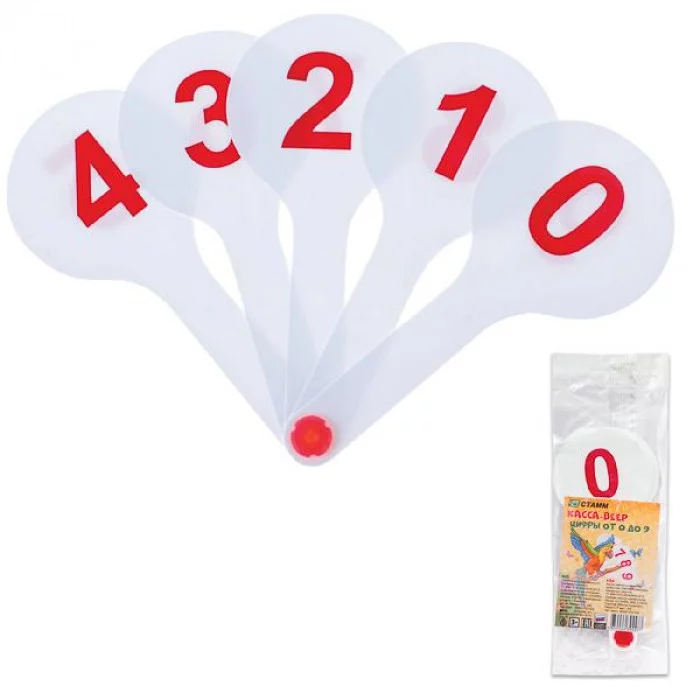 Касса-веер цифр от 0 до 9 предназначена для обучения детей младших классов и дошкольников. Веер лёгкий и удобный для детской ладошки. Крупный размер и шрифт, качественная печать, устойчивая к истиранию. Упаковка: прозрачный пакет с европодвесом.