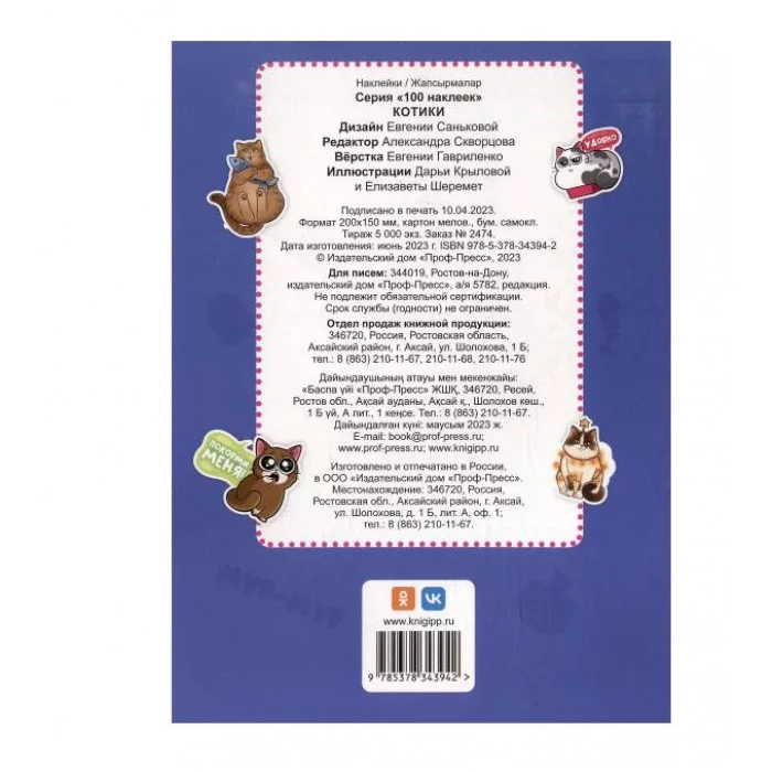 100 НАКЛЕЕК. КОТИКИ 978-5-378-34394-2