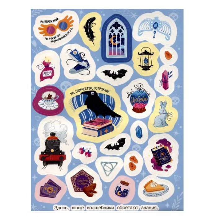 Хогвартс-экспресс» уже готов отправиться в школу волшебства и чародейства! Не забудь свою палочку, юный волшебник! В наборе сто самых разных волшебных стикеров-артефактов для настоящего мага. Наклейками можно украсить ежедневник, тетради, скетчбук, телефон и многое другое!