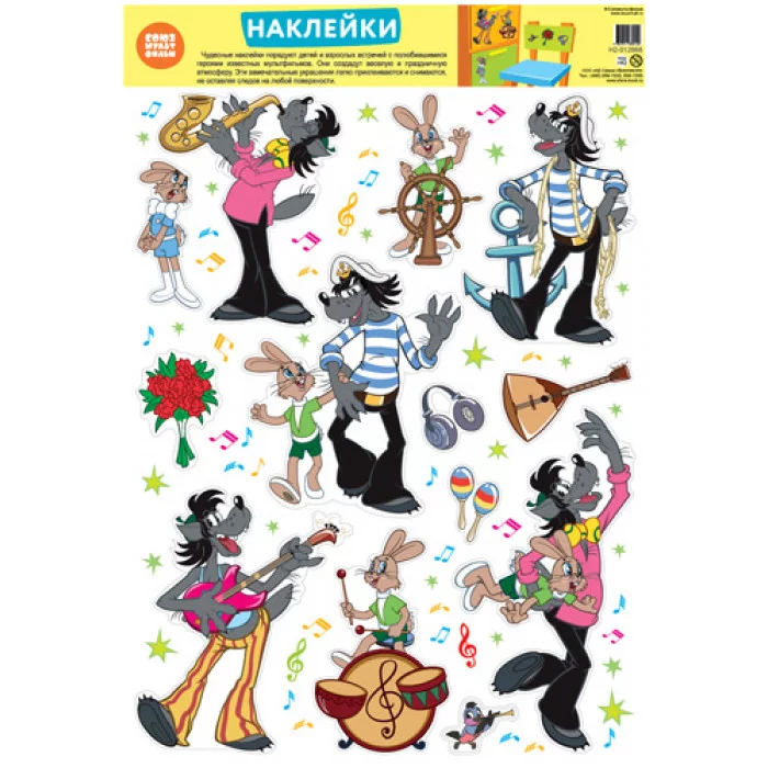 Н2-12666 Декоративные наклейки персонажи мультфильма Ну, погоди! (УФ-лак) / Союзмультфильм Сфера (о) Наклейки 4607811855100