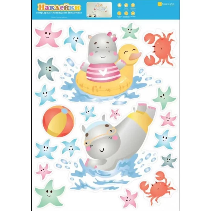 Наклейка оформительская "Купающиеся бегемотики" Горчаков 00598