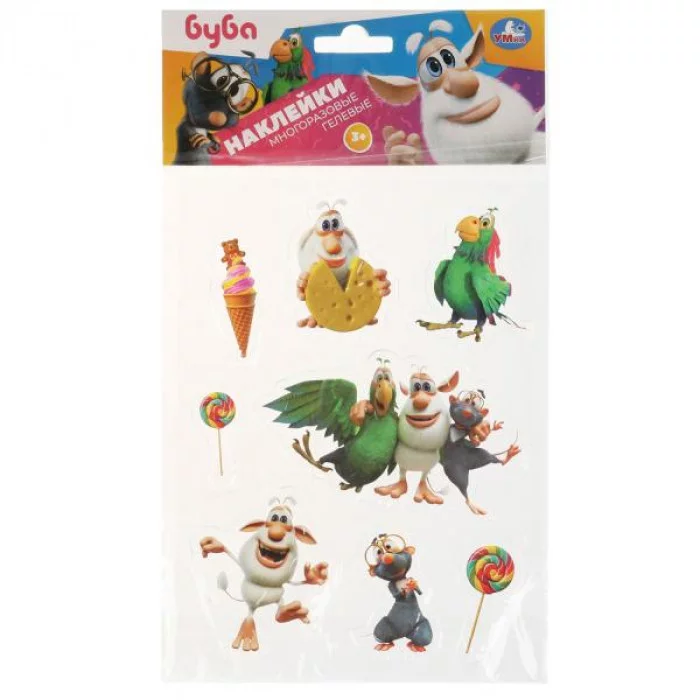 Гелевые многоразовые наклейки «Буба» ТМ «УМка» непременно понравятся всем маленьким поклонникам стикеров: