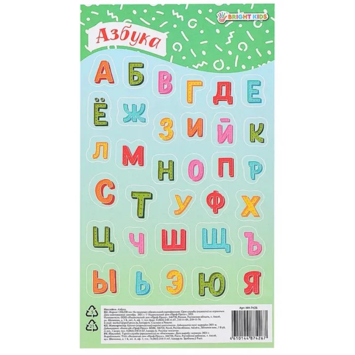 Наклейки "Азбука" (НН-7426) 130*230 1л. самоклейка, высечка лазером НН-7426
