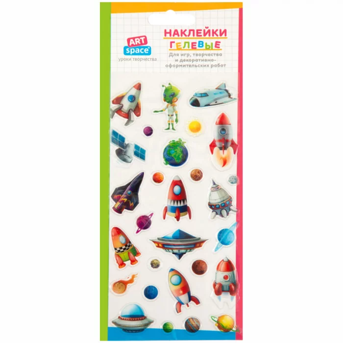 Наклейки гелевые ArtSpace "Путешествие по галактике", 10*19см, пакет, европодвес Спейс 261114