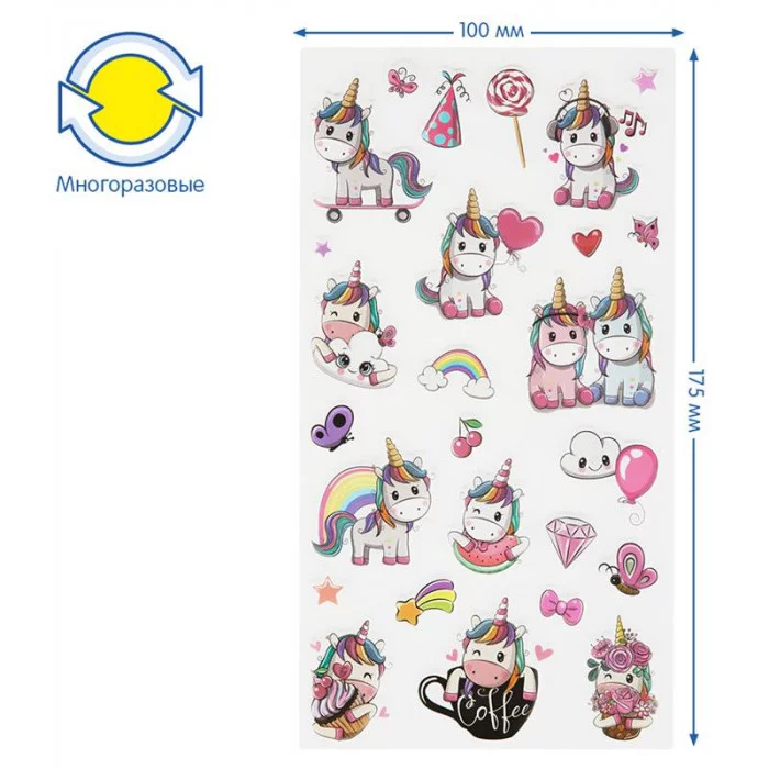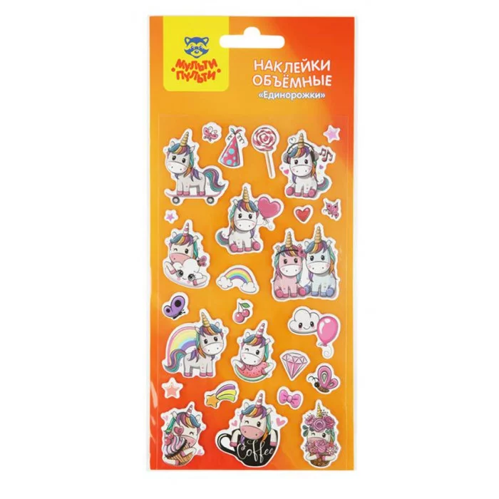 Наклейки объемные Мульти-Пульти "Единорожки", 10*22см, 26 наклеек, инд. уп., европодвес 329647