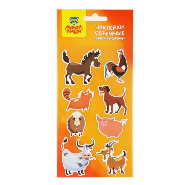 Наклейки объемные Мульти-Пульти "Звери на ферме", 10*22см, 8 наклеек, инд. уп., европодвес 329640