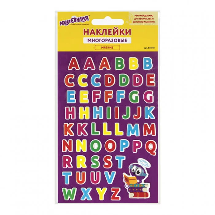 Зефирные наклейки ЮНЛАНДИЯ - это простой и яркий способ украсить любые изделия. Многоразовые наклейки подходят для использования на бумаге, картоне, дереве, пластике, стекле и других поверхностях несколько раз, не оставляя следов. В наборе содержатся мягкие зефирные наклейки в виде букв английского алфавита, в количестве 56 штук. Наклейки отличаются высочайшим качеством печати и цветопередачи. Яркие зефирные буквы придадут оригинальности тетрадям, дневникам, гаджетам, украсят поделки и, помимо этого, могут быть использованы для обучения.Качественный клеевой слой позволяет приклеивать и отклеивать наклейки несколько раз, не оставляя следов на поверхности. При этом каждый раз наклейка надёжно фиксируется и продолжает долго радовать своей красотой.Товар премиум-качества, относится к среднему ценовому сегменту.