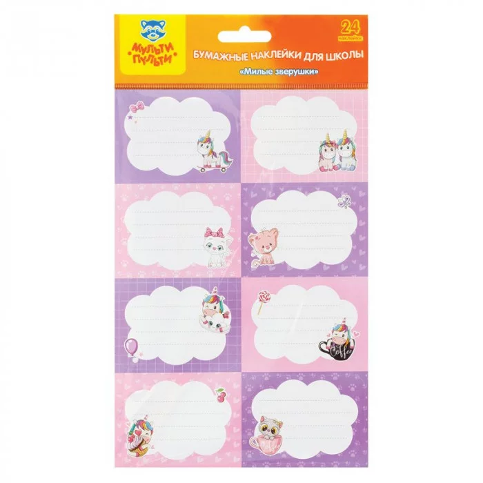 Набор бумажных наклеек для маркировки школьных принадлежностей Мульти-Пульти "Милые зверушки", 140*210, 24 наклейки, европодвес 340079