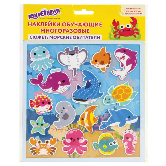 Наклейки обучающие тематические из EVA "Морские обитатели", 20х40 см, многоразовые, ЮНЛАНДИЯ, 663771