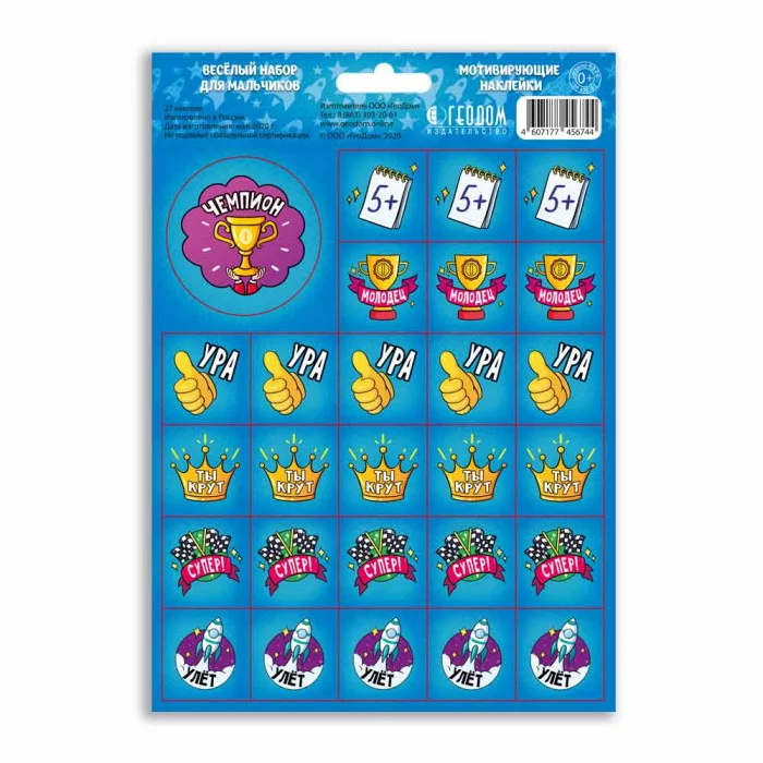 Наклейки оценки для мальчиков веселые (27 накл.) 7437 Геодом /1 /0 /0 /1 322950