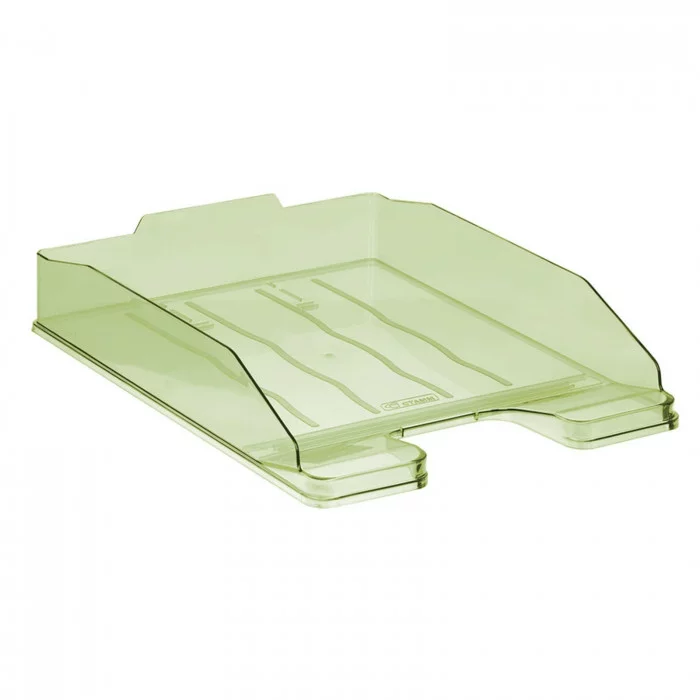 Лоток горизонтальный для бумаг формата А4. Современный дизайн, прочный, вместительный корпус. Предусмотрена возможность установки одного лотка на другой. Изготовлен из качественного полистирола. Цвет лотка - тонированный лайм. Вид товара: лоток для бумаг