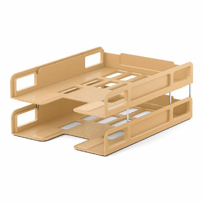 Набор из 2 пластиковых лотков-трансформеров для бумаг ErichKrause® Techno, Powder, бежевый 55562