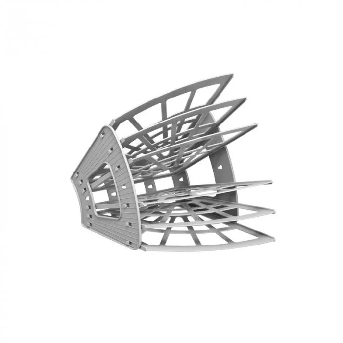 Лоток 5-ти секционный 4 отделения для бумаг формата А4. Конструкция предусматривает возможность горизонтального и вертикального расположения. Регулируемая ширина отделений. Прочный, легкий, вместительный корпус. Изготовлен из качественного полистирола. Упакован в термоусадочную пленку, поставляется в разобранном виде. Инструкция по сборке в комплекте. Цвет лотка - серый.