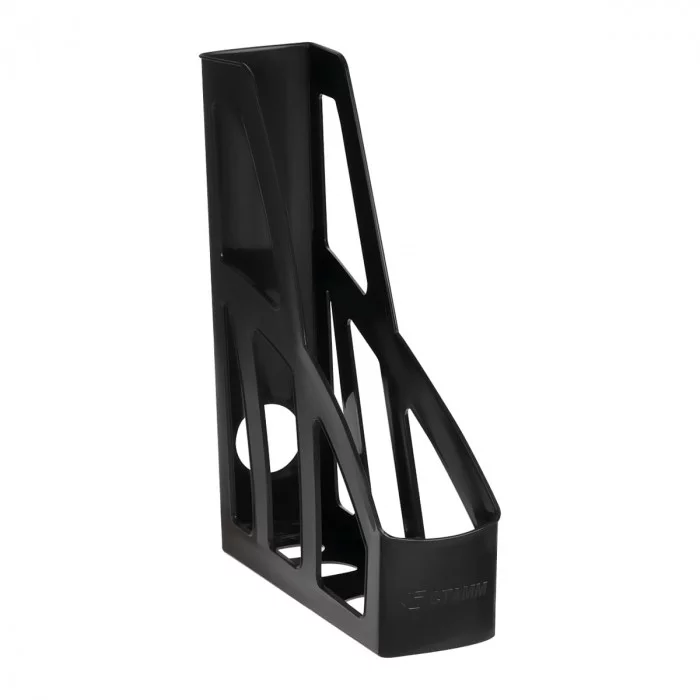 Лоток для бумаг вертикальный "СТАММ" серии "Лидер" предназначен для хранения и систематизации бумажной продукции формата А4. Оригинальный дизайн, лёгкий, устойчивый и прочный корпус. Имеет отверстие на торцевой части для удобной переноски. Изготовлен из качественного пластика. Цвет лотка - чёрный. Изделие высотой 297мм, глубиной 250мм, шириной 70мм вмещает до 550 листов.