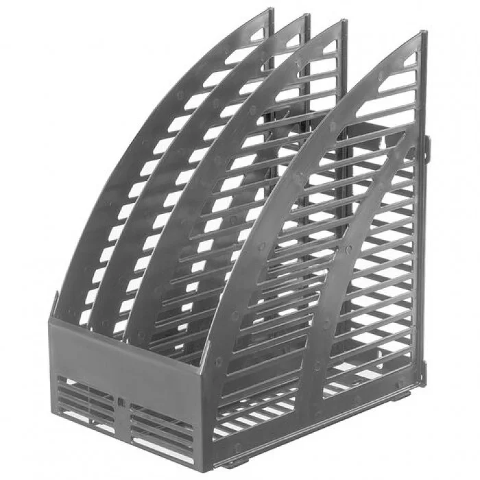 Лоток вертикальный для бумаг STAFF, 245х165х285 мм, 3 отделения, сетчатый, сборный, серый, 237294