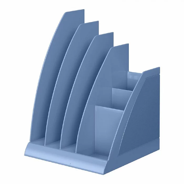 Настольная подставка с отдельными секциями для хранения как документов, журналов и каталогов любого формата, так и канцелярских принадлежностей. Изготовлена из высококачественного пластика.