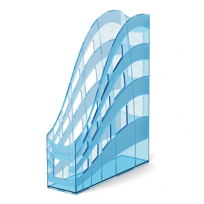 Подставка для бумаг вертикальная пластиковая ErichKrause® S-Wing, Glitter, 75мм, голубой 55587