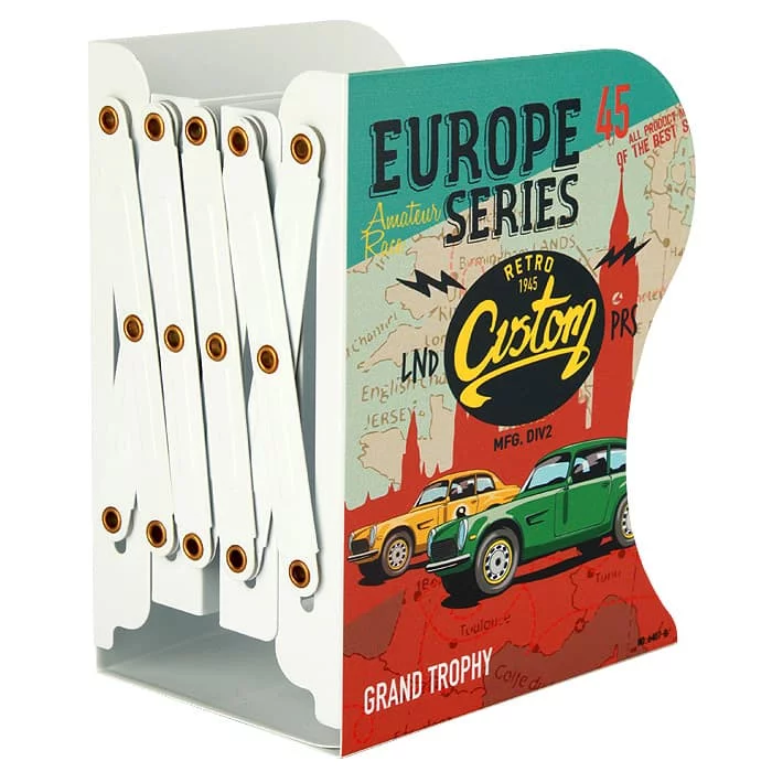 Раздвижная подставка/держатель для книг с ярким дизайном, корпус из металла. Раздвигается до 45 см. Большая вместимость - не менее 15 учебников стандартных размеров.