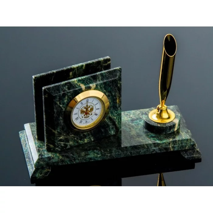 Набор настольный "Мини", с часами, 13х6х8 см, змеевик 493221