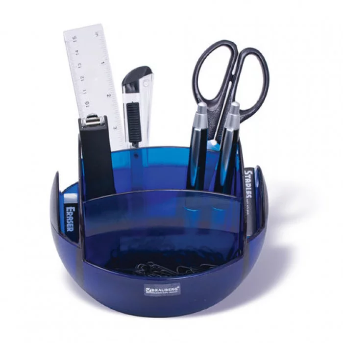 Канцелярский набор BRAUBERG 9 предм, сферич. форма, вращ. конструк. 360°, тонир.син, блистер, 231926
