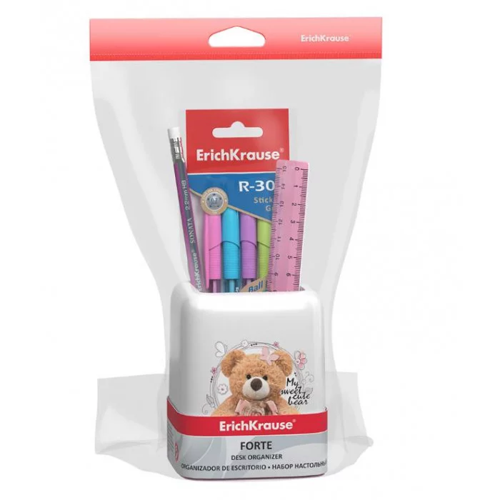 Набор настольный пластиковый ErichKrause Forte Teddy Bear белый с розовой вставкой 55736