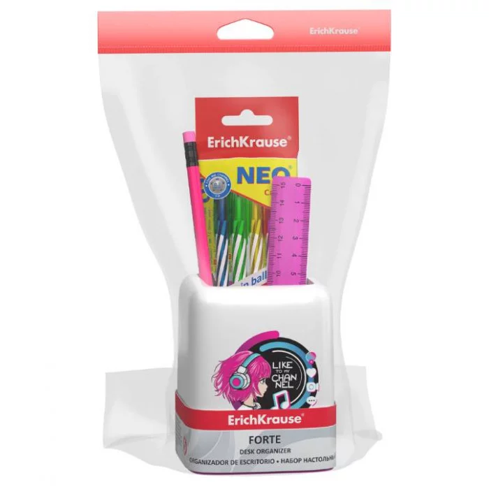 Набор настольный пластиковый ErichKrause Forte Top Blogger белый с розовой вставкой 57978