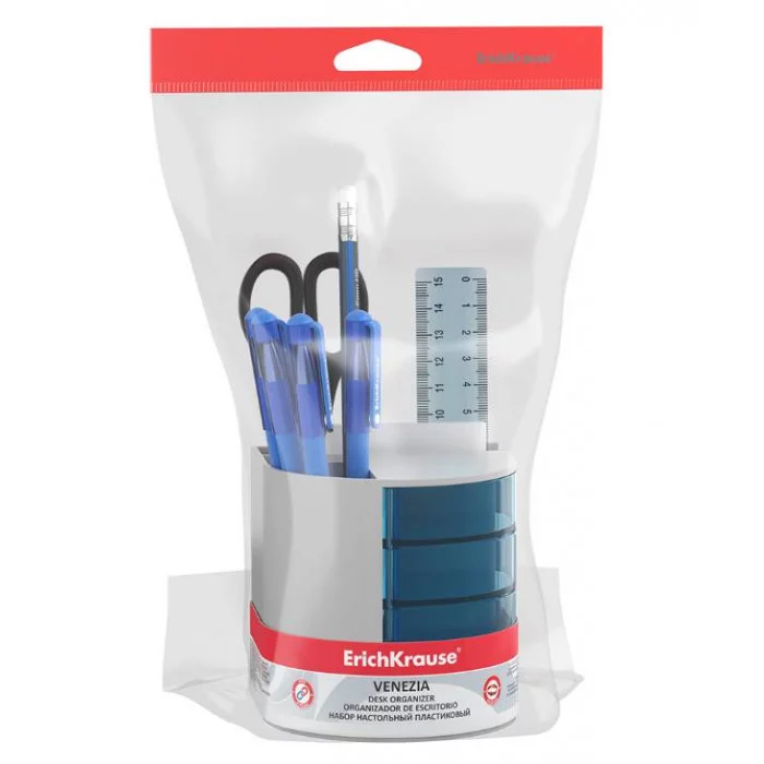 Набор настольный пластиковый ErichKrause Venezia Classic белый с голубыми ящиками 55647