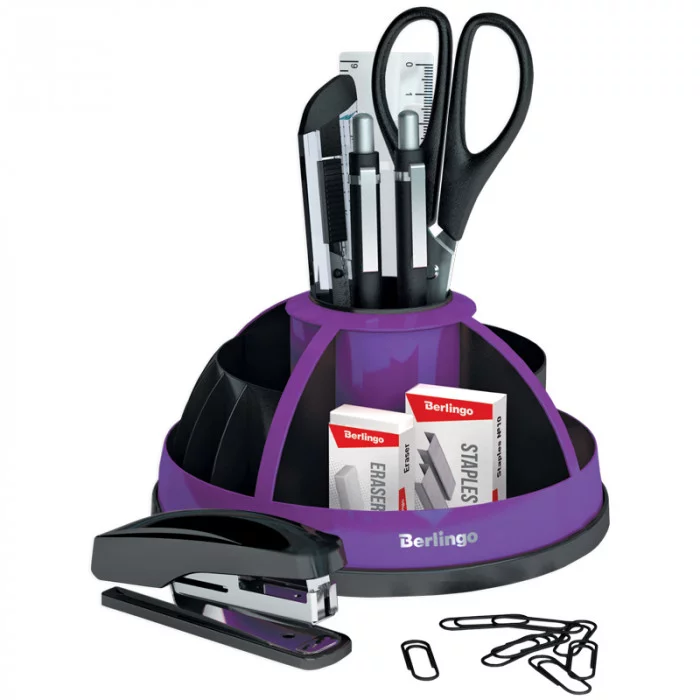 Настольный органайзер Berlingo "BR", 9 предметов, вращающийся, черный/фиолетовый BERLINGO_ 243155