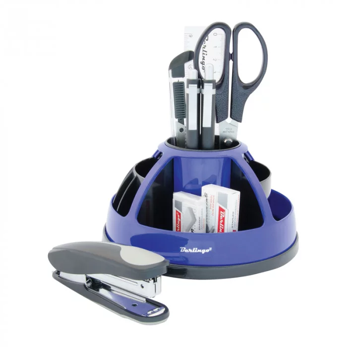 Настольный органайзер Berlingo "BR", 9 предметов, вращающийся, черный/голубой BERLINGO_ 196600