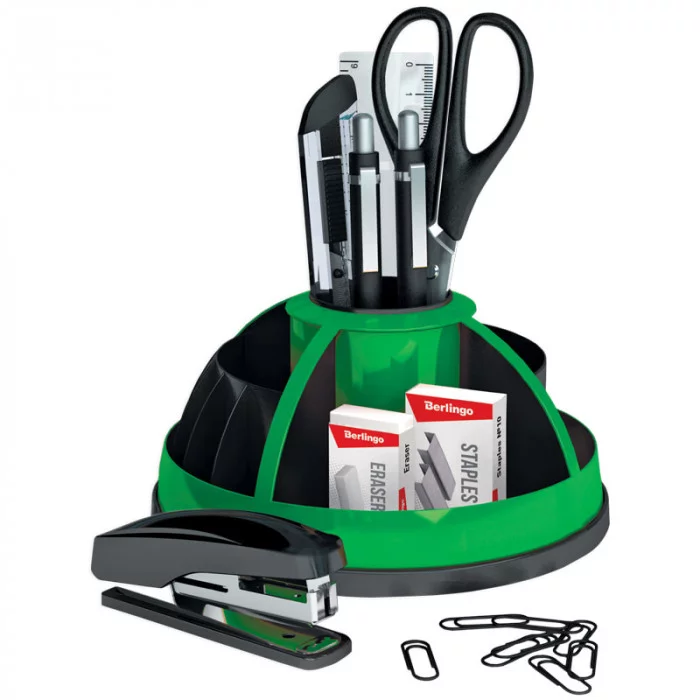 Настольный органайзер Berlingo "BR", 9 предметов, вращающийся, черный/зеленый BERLINGO_ 243156