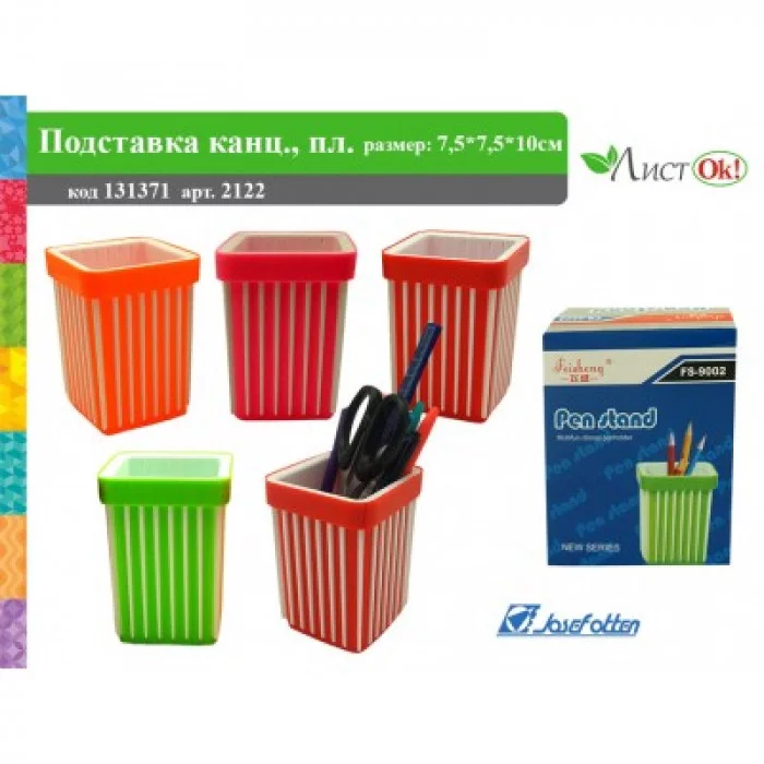 Подставка для канцелярских принадлежностей "2 в 1", куб, 7.5х7.5х10см, пластик, цв.асс 2122 /1 /0 /144 131371