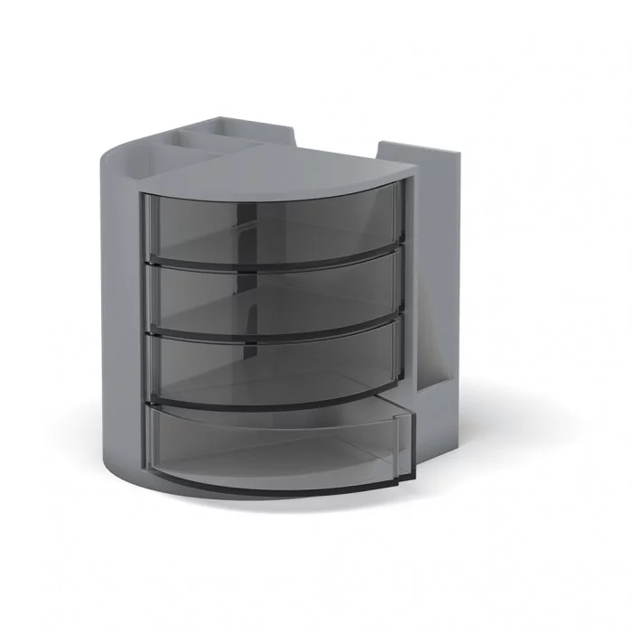 Подставка для удобного хранения настольных принадлежностей. Оснащена выдвижными ящичками и изготовлена из высококачественного пластика.