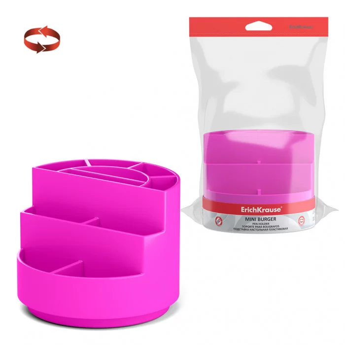 Подставка настольная вращающаяся пластиковая ErichKrause Mini Burger Neon Solid розовая 55768