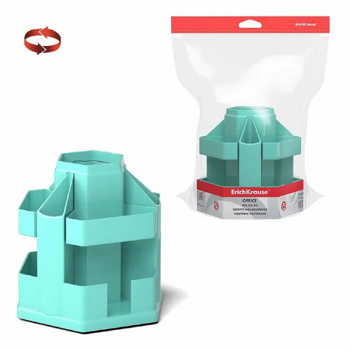 Подставка для удобного хранения настольных принадлежностей. Оснащена вращающимся механизмом и изготовлена из высококачественного пластика.
