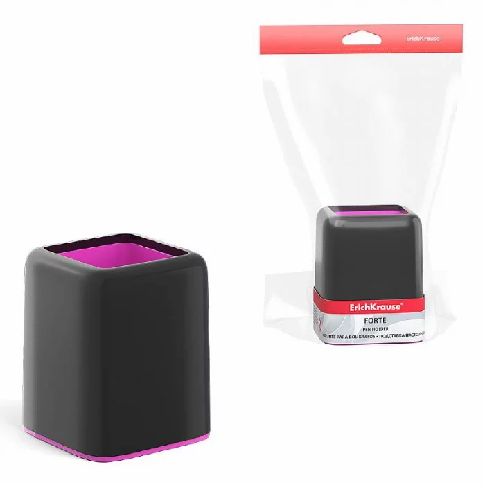 Подставка настольная пластиковая ErichKrause® Forte, Accent, черная с розовой вставкой 55838