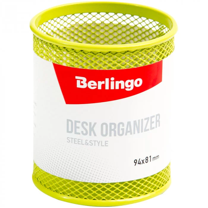 Стильная и практичная металлическая подставка-органайзер Berlingo Steel&Style предназначена для хранения канцелярских принадлежностей. Прочный корпус изделия выполнен из высококачественного металла, благодаря чему подставка прослужит своему владельцу долго. На дне имеются мягкие подушечки, которые предотвратят скольжение предметов и не повредят поверхность. Зелёный цвет изделия разнообразит и освежит любое рабочее место. Сетчатое исполнение предотвращает образование пыли внутри. Размер подставки стакана Berlingo Steel&Style: 94*81 мм. Цвет: зелёный; Количество отделений: 1; Материал: металл; Упаковка: нет.